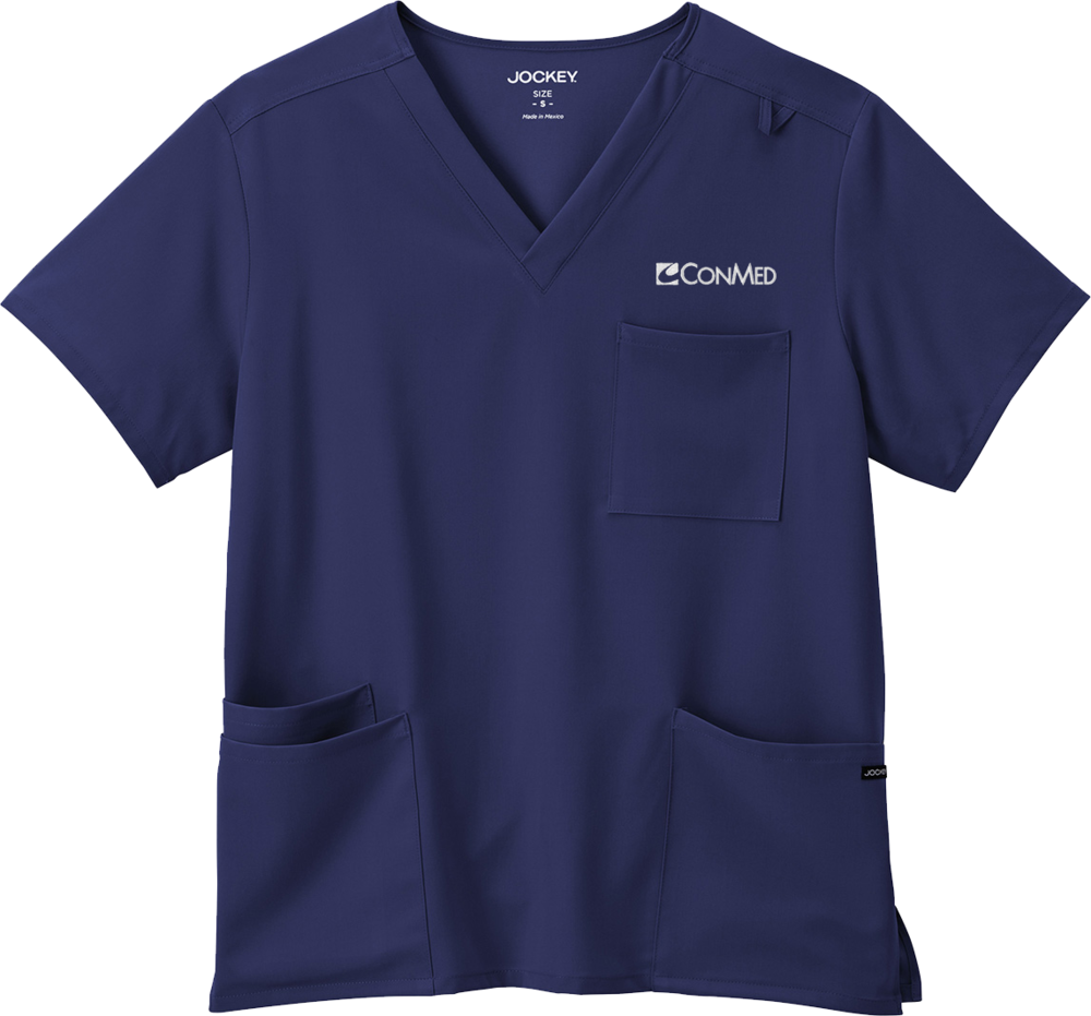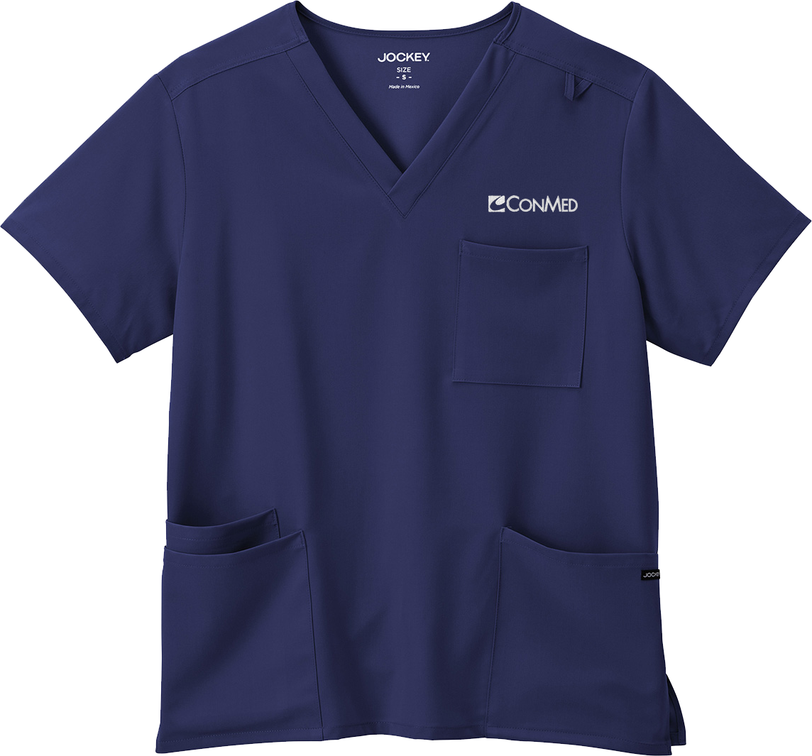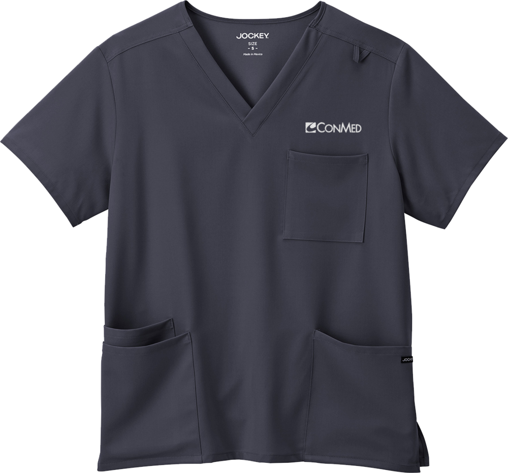 sku: cm-scrub-001Banded V-Neck design for a classic, professional look. Forward dropped shoulder with badge loop for maximum comfort. Side vents allow for easy mobility. Four pockets for all your gear. 28" Length. Tri-Blend: 72% Polyester, 21% Rayon, 7% Spandex.